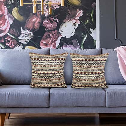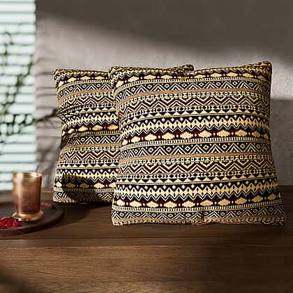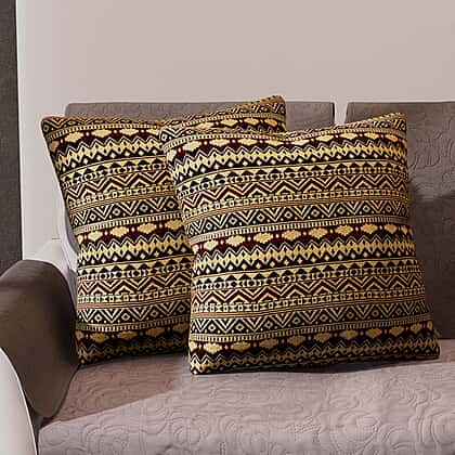 Set of 2 - Turkish Kilim Pattern Cushion Covers - Yellow and Multi
