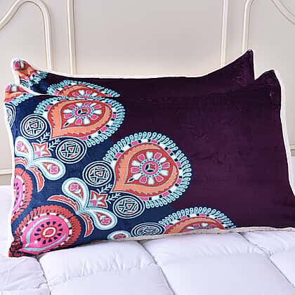 Set of 3 - Microflannel Mandala Printed Comforter in King Size with Sherpa Lining with 2 Sherpa Pillowcases - Purple and Multi Colour - (230cm x 250cm)