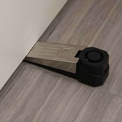 - WEDGE-SHAPED: The wedge-shaped design fits any hinged door and will prevent them from opening and activating a 120dB alarm