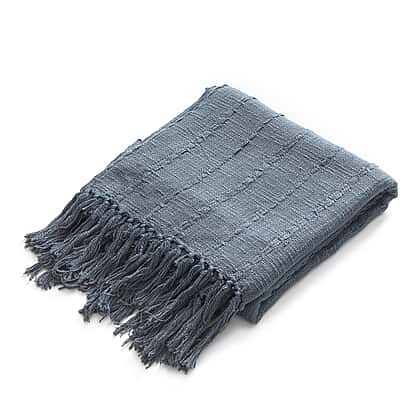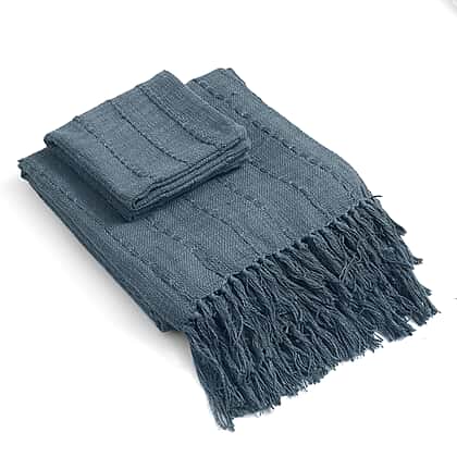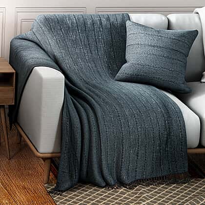 Solid Woven Cotton Slub Throw Summer Blanket with Cushion Cover - Blue