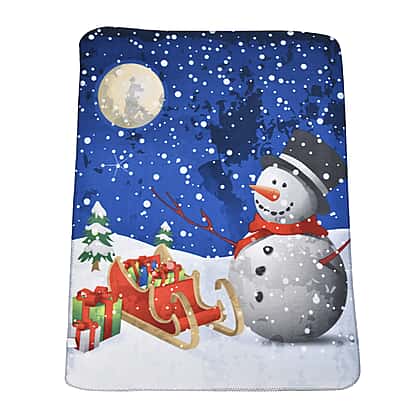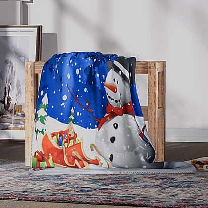 TJC Christmas Snowman Pattern Throw Blanket (Size 170X130 Cm) - Blue and Multi