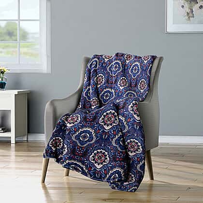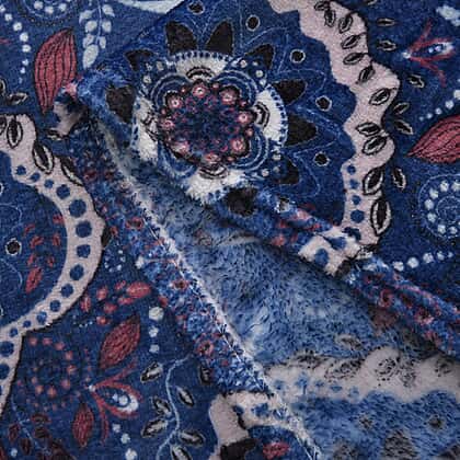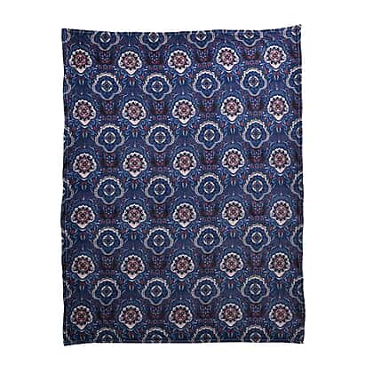 Tjc Ethnic Flower Pattern Single Layer Flannel Blanket (Size 200x150 Cm) - Navy