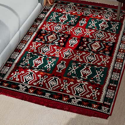 • DESIGN: This magnificent Red Rug features geometrical patterns with tassels on the edges, which offer a finishing touch