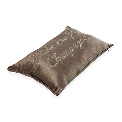 Wake me For Champagne - Cushion with Hand Embroidered Beads (30x50 cm Filling Incl.) Chocolate