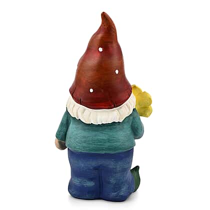 Add a touch of whimsy to your garden with this charming Resin Gnome Figurine. Standing 26 cm tall, this delightful gnome features a classic red hat with white polka dots, a green shirt, and blue pants. Holding a vibrant yellow flower, he stands cheerfully beside a red-capped mushroom, ready to bring joy to your outdoor space. Perfect for brightening up your garden, patio, or even indoor settings, this durable resin showpiece is designed to withstand the elements while adding a playful touch to your décor.