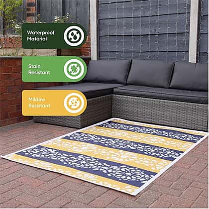 Transform your outdoor space with this Polypropylene Rug and Reversible Doormat, perfect for your garden, patio, or terrace. Its reversible design offers two stylish looks in one, allowing you to easily switch things up. Made from polypropylene tubing weave (380GSM), this rug is built to withstand the elements while remaining comfortable underfoot. Its mildew-resistant, waterproof properties make it a practical choice for outdoor living. Whether hosting a garden party or relaxing outside, this rug brings warmth and character to any space.