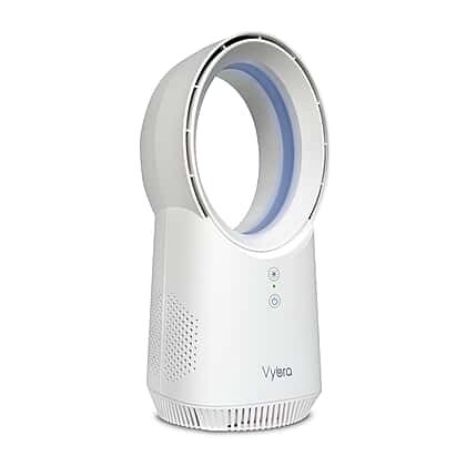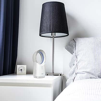 - Bladeless design ensures safety and a sleek, modern look that complements any décor.