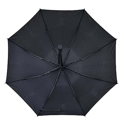 3 Fold Automatic Open Close Reverse Compact Inverted Umbrella - Black