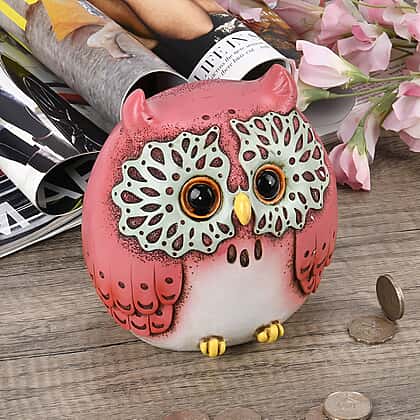 Cute Decorative Owl Figurine Money Bank - Pink