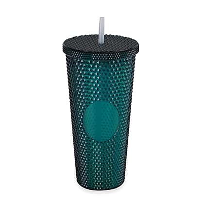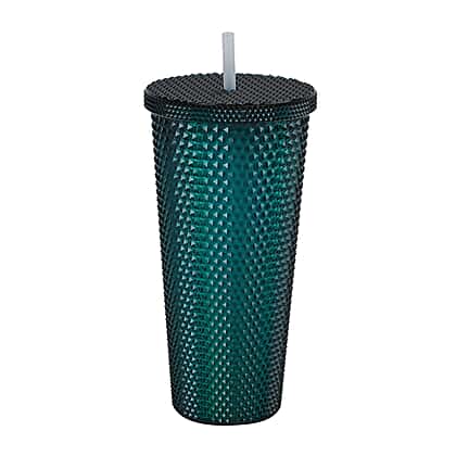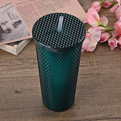 Double Wall Creative Water Tumbler with Silica Gel Straws 600ml - Green