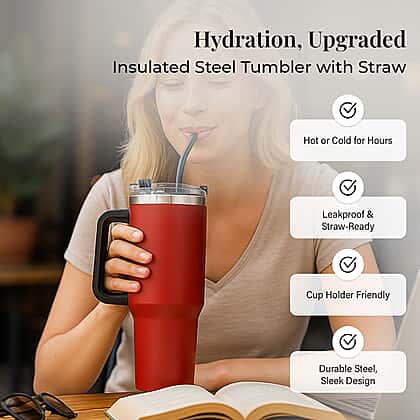 Stay refreshed throughout the day with this red insulated steel tumbler with straw (1200ml), designed for convenience and style. Crafted with a 304 stainless steel interior and a 201 stainless steel exterior, it ensures lasting durability and maintains the temperature of your drink for hours. The leakproof lid prevents spills, while the straw and silicone grip allow for easy sipping. Its sleek shape fits most cup holders, making it a great companion for work, travel, or workouts. With a dishwasher-safe build and a bold red finish, this tumbler is perfect for coffee, tea, or cold beverages.