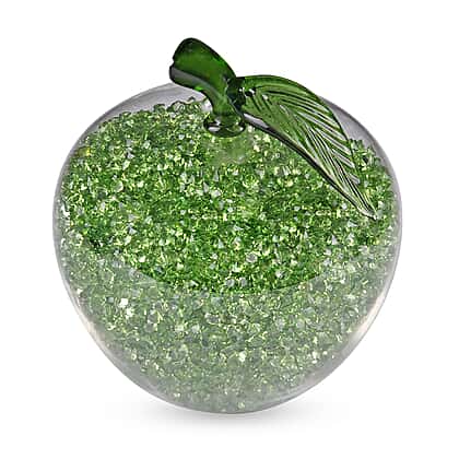 Glass Ornament Bling Diamond Crystal Filled Apple Shape - Green