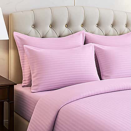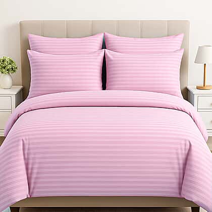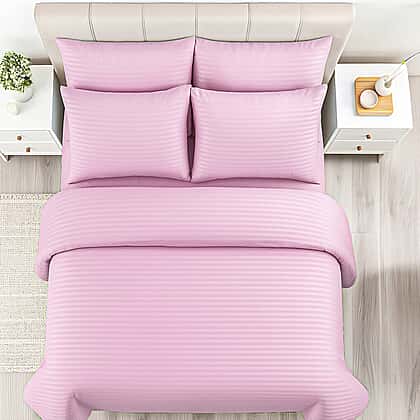 Bring a touch of gentle warmth to your space with the Luxe Collection - 6-piece vertical satin stripe duvet cover set. The delicate light pink tone infuses calm and charm, turning your bedroom into a soft retreat. Blended from 80% cotton and 20% polyester, this fabric feels smooth and cool through the night. The satin stripe detail adds a subtle shimmer that catches the light beautifully. Including a duvet cover, fitted sheet with four elasticated corners, and four pillowcases—two Oxford and two Housewife—it’s everything you need for comfort and elegance in one coordinated design.
