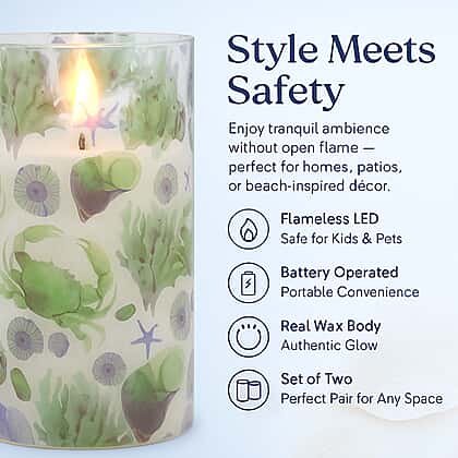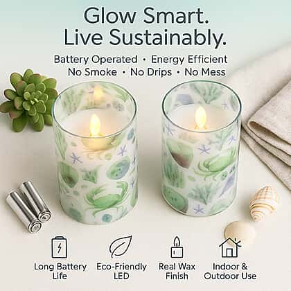 Set of 2 LED Floral Printed Glass Wax Candle - Multi