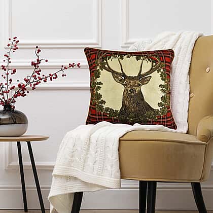 Bring home the Christmas vibe with this reindeer print cushion cover. It features red checkered prints all over it, with a leaf wreath design in the centre featuring a reindeer print. It is made from 100% polyester material which is durable, soft and comfortable to use, it has a zip closure on one end for easy removal of the pad to clean them. Decorate your home and living space with this beautiful, stylish Christmas-themed cushion cover.