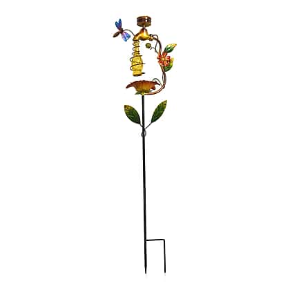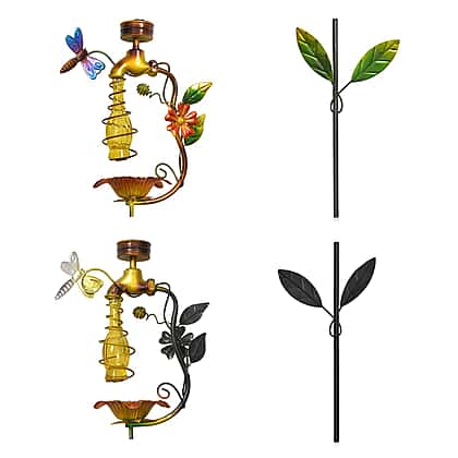 • Colourful metal flowers and butterflies are scattered with warm LEDs