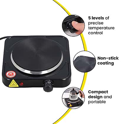 Homesmart 1000W Single Hot Plate for Cooking (Includes 5 Level of Pressure Temperature Control) - Black