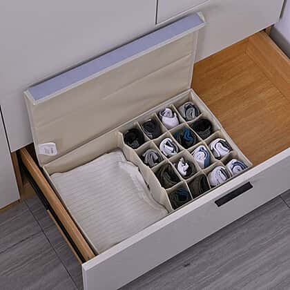 Are you tired of sifting through piles of disorganised underwear every morning? The HomeSmart Underwear Storage Box with Lid and 17 Compartments is here to revolutionise your daily routine! With its customisable and spacious design, this storage box lets you easily store and organise your underwear, bras, and socks. The lid keeps your items dust-free, while the 17 compartments ensure each item has its designated space. ItsIn addition, itsrable and lightweight design allows for easy transport, making it perfect for travel. Upgrade your underwear storage game and simplify your life with the HomeSmart Underwear Storage Box with Lid and 17 Compartments!
