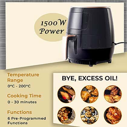 Homesmart Air Fryer 4.5L (1400W) - Air Fry, Roast, Bake, Reheat - Uses little to no oil, - Black (34x30cm)