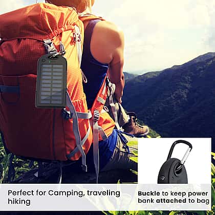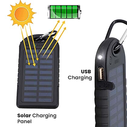 Get this multi-functional and portable power bank from Homesmart. This battery contains a 5000mah battery and two USB ports for charging phones simultaneously. It works on solar energy and supports different battery types and devices. It also features an emergency LED to guide you in dark places, a perfect device to use when travelling, hiking, camping or on holiday.