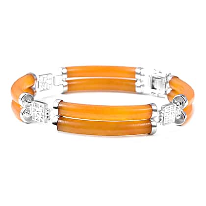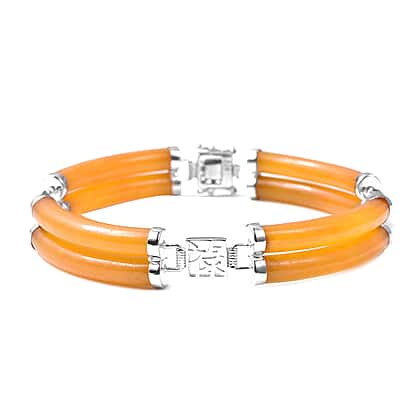 85.15 Ct Honey Jade and Citrine Station Bracelet in Rhodium Plated Silver 7.25 Inch