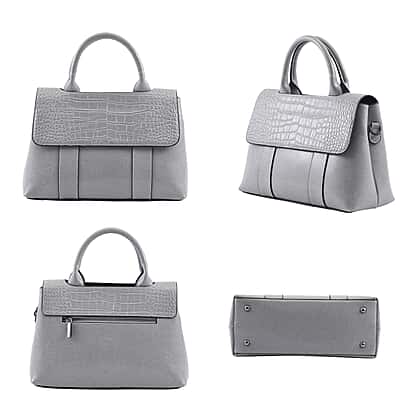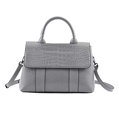 Hong Kong Closeout Deal - 100% Genuine Leather Croc Embossed Convertible Bag with Shoulder Strap - Nude