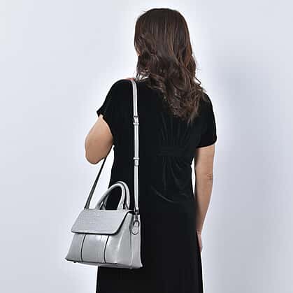 Hong Kong Closeout Collection Genuine Leather Croc Embossed Convertible Bag with Long Strap - Brown