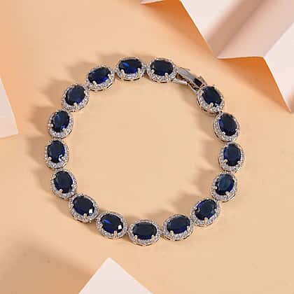 HongKong Closeout - Simulated Blue Sapphire & Simulated Diamond Tennis Bracelet (Size - 7.5)