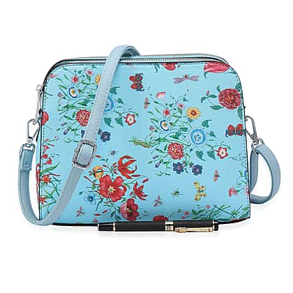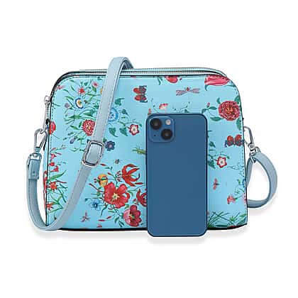 House Of Milano Floral Print Double Pocket Crossbody Bag - Blue