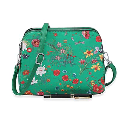 House Of Milano Floral Print Double Pocket Crossbody Bag - Green