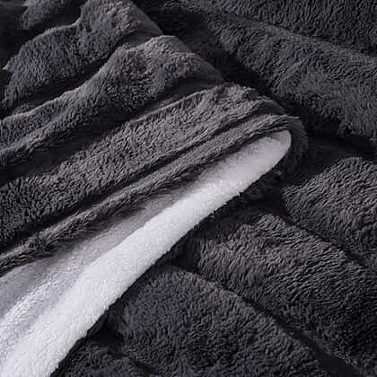 Ideal World Pick of the Day- Faux Rabbit Fur Patterned Blanket (Size 150 x 200 cm) - Dark Grey - White