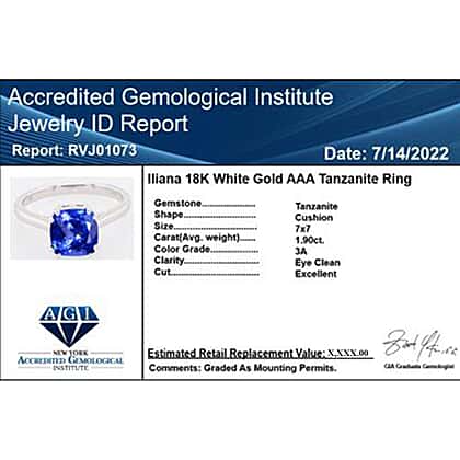 Iliana 18K W Gold AAA Tanzanite Ring, Gold Wt.3.02 Gms 1.900 Ct.