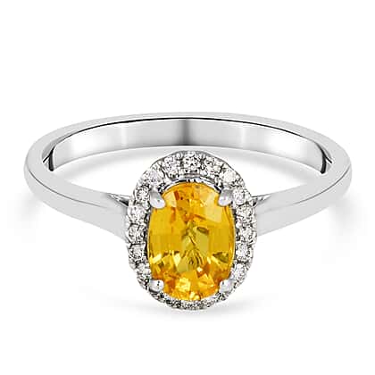 - GEMSTONE CUT AND CARAT: The ring feature a yellow sapphire of 7x5 Faceted oval cut for a classy appeal. There are round cut diamonds around it, for a dazzling appearance. The gemstones offer a total carat weight of 1.250ct