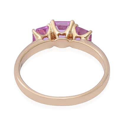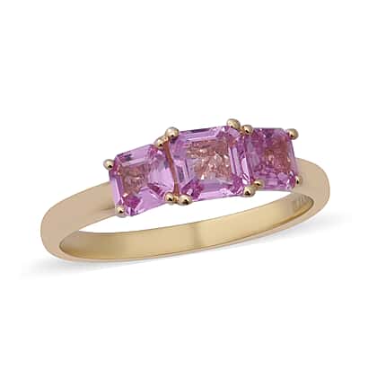 ILIANA 18K Yellow Gold AAA Pink Sapphire Trilogy Ring 1.76 Ct.