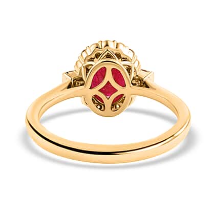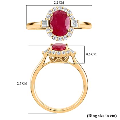 ILIANA 18K Yellow Gold AAA Ruby Halo Ring with SI-G-H Diamond 1.85 Ct.