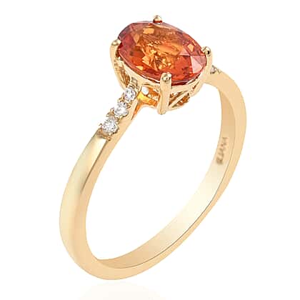ILIANA 18K Yellow Gold AAAA Orange Sapphire and Diamond (G-H-SI) Ring 1.70 Ct.