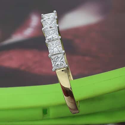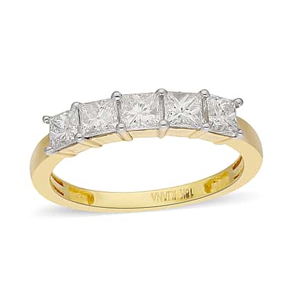 ILIANA 1 Carat Certified Princess Cut Diamond 5 Stone Eternity Band Ring in 18K Yellow Gold