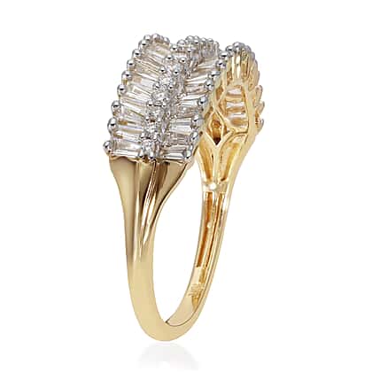 - DIAMONDS CUT AND GRACED TO PERFECTION: The diamonds are cut in baguette and round shapes with utmost perfection and skill. A row of round shaped diamonds in the middle of baguette shaped pieces at the sides, makes the ring stand out with a total gemstone weight of 1.15 CT, a prong setting exerts pressure on each gemstone to keep them in place