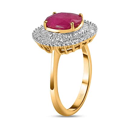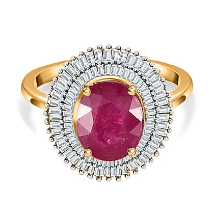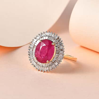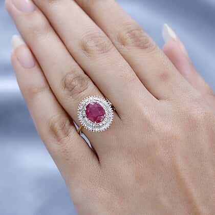 ILIANA 18K Yellow Gold Natural AAAA Mozambique Ruby and Diamond (SI-G-H) Halo Ring 2.54 Ct