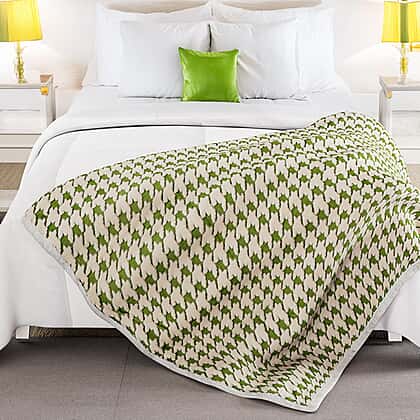 Experience ultimate comfort with thai livmore double layer sherpa blanket in beautiful cream and green colour. Crafted with soft and premium fabric to offer warmth, the blanket's plush double layer wraps your in luxury, making it ideal for cozy nights, chill evenings, or layering on bed or sofas. The classic delicate design in green and cream enhances the beauty of your living space. Enjoy the softness with this blanket, designed for cozy vibes and warmth nights.
