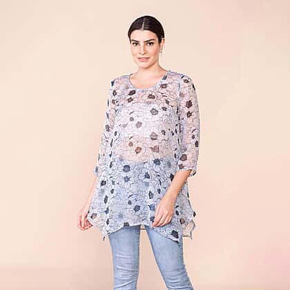 Get summer ready with this floral print polyester top, and let the breeze come in. The delicate appearance of this top can be paired beautifully with shorts or jeans. This top's super relaxing round neckline is an ideal choice for the summer heat. The asymmetrical hemline makes this piece of clothing a stylish one. Made of polyester, this top can be machine-washed will be a superb choice for all those casual outings or beach dates.