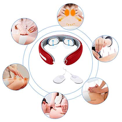 Intelligent Portable Neck Massager with Electrode Patch (Size 15x14x5 Cm) - Red and Grey