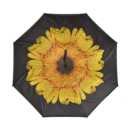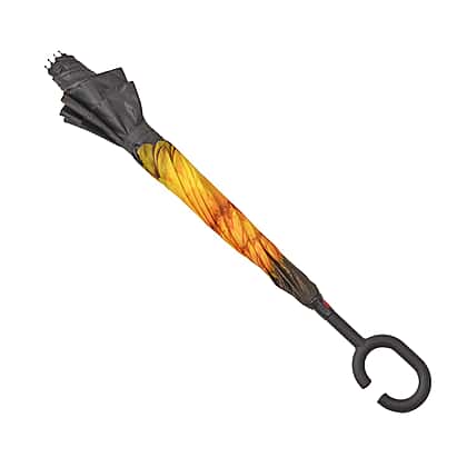 Experience elegance and innovation with the Sunflower pattern upside down reverse umbrella. Its unique design keeps you dry while closing inwards, preventing water droplets from dripping. The C-shaped handle allows hands-free convenience, perfect for multitasking on rainy days. Embrace style and functionality as you navigate through the rain, making a statement with every step.