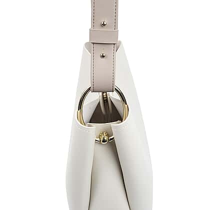 - STATEMENT VALUES: It is adorned with a statement metal hoop and contrasting handles.