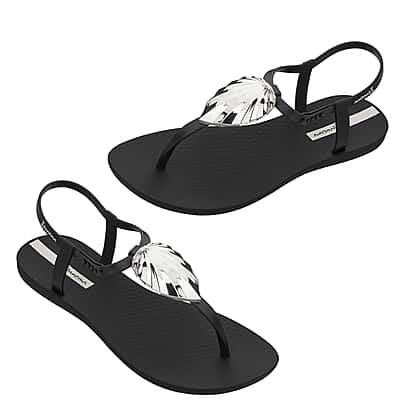 Ipanema Leaf Shine Sandal with T-bar Strap - Black