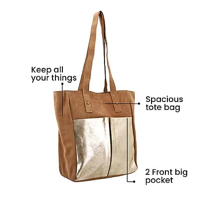 Upgrade your fashion look with this stylish 100% genuine leather tote bag and elevate the look of your outfit. This bag is handcrafted with premium genuine leather for that designer touch. This bag features two front pockets to keep your mobile and is secured with a magnetic closure and zipper pockets to store all your essentials in one place. This bag has a dual drop handle to carry your travel buddy on vacation or in your office.
