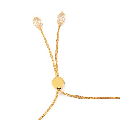 Italian Made - 9K Yellow Gold Cubic Zirconia Adjustable Bolo Bracelet (Size 6.5-9.5)