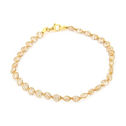 Italian Made - 9K Yellow Gold Tuscan Crochet Cubic Zirconia Bracelet (Size 7.5)