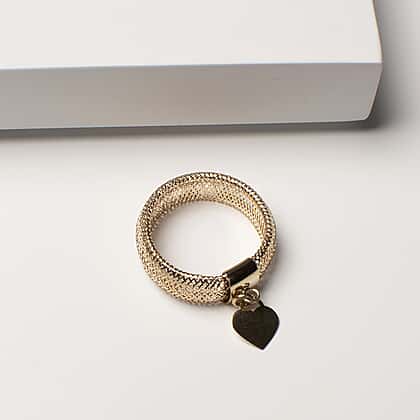 Italian Made Heart Charm Mesh Ring in 9K Yellow Gold Size Large Size Q to U
