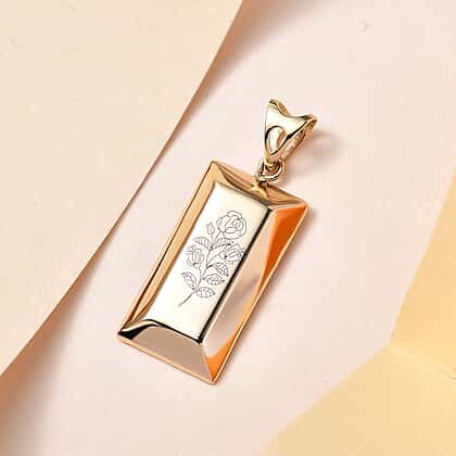 Italian Made Closeout Deal - 9K Yellow Gold Rose Ingot Bar Pendant